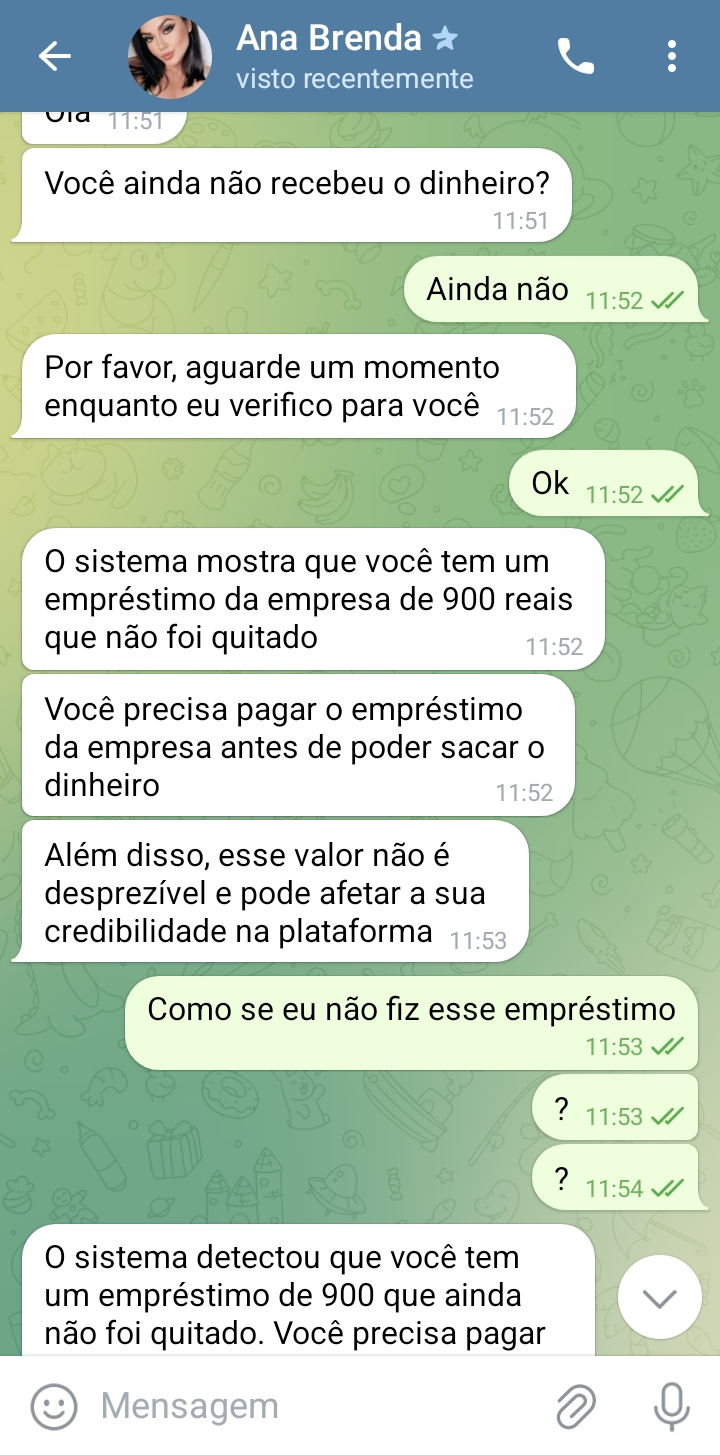 Vitima contou que estava fazendo apostas e acabou perdendo R$ 316,00. A pessoa com quem falava disse que, para recuperar o valor perdido, ela precisaria pagar mais R$ 381,00 e, assim, receberia o total de R$ 697,00