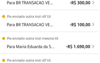 Os golpistas afirmaram que era necessário completar “missões” e, para isso, a vítima precisaria fazer novos pagamentos. Assim, além do primeiro PIX de R$ 100 reais, foram feitas diversas outras transferências para outra conta bancária.