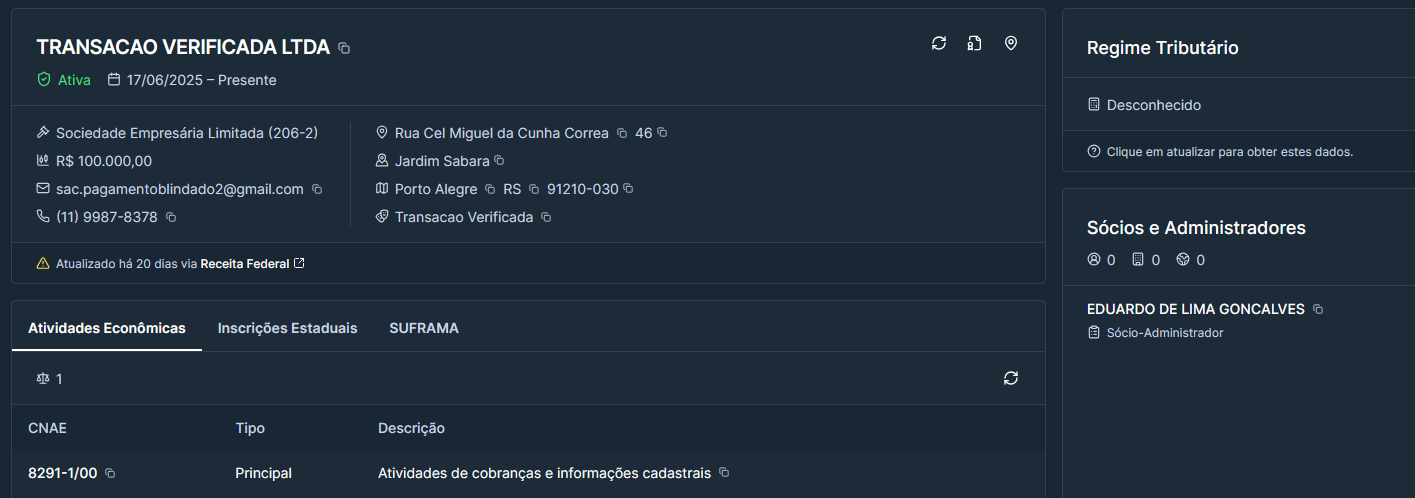 Empresa TRANSACAO VERIFICADA LTDA (CNPJ 61.352.094/0001-52) aberta em 17/06/2025 está envolvida em golpes na internet relacionados à falsa renovação de CNH e outros golpes.