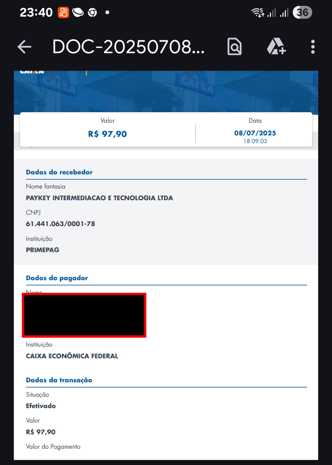 CNPJ 61.441.063/0001-78, registrada como PAYKEY INTERMEDIACAO E TECNOLOGIA LTDA, já possui denúncias publicadas neste site, além de várias outras disponíveis na internet.