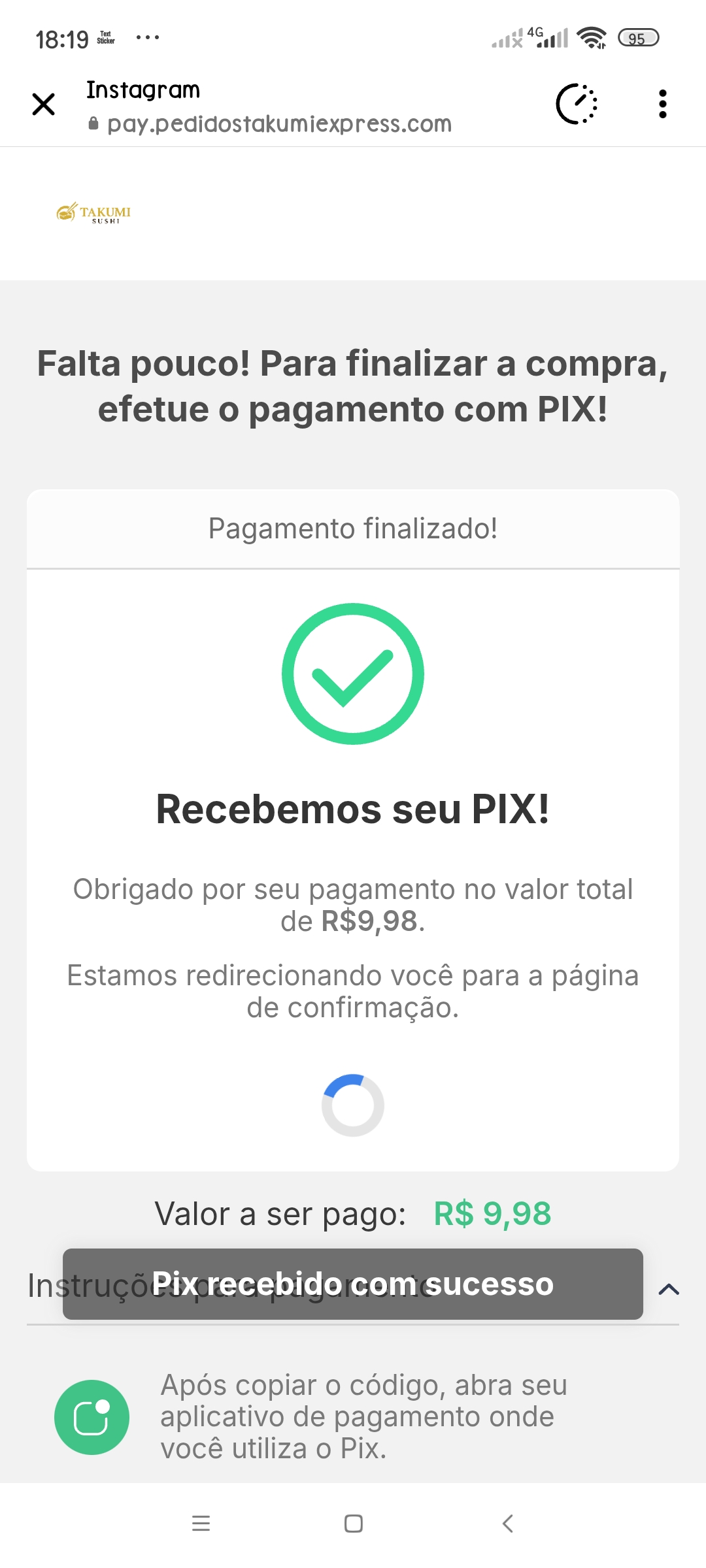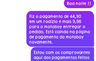 A pessoa fez o pedido no dia 09/07/2025 de um rodízio, pagando também a taxa de envio do entregador. Em seguida, foi redirecionada novamente para uma página solicitando o pagamento do motoboy, o que levantou suspeitas. Ao pesquisar sobre a empresa no Google, descobriu que havia outras denúncias semelhantes à sua.