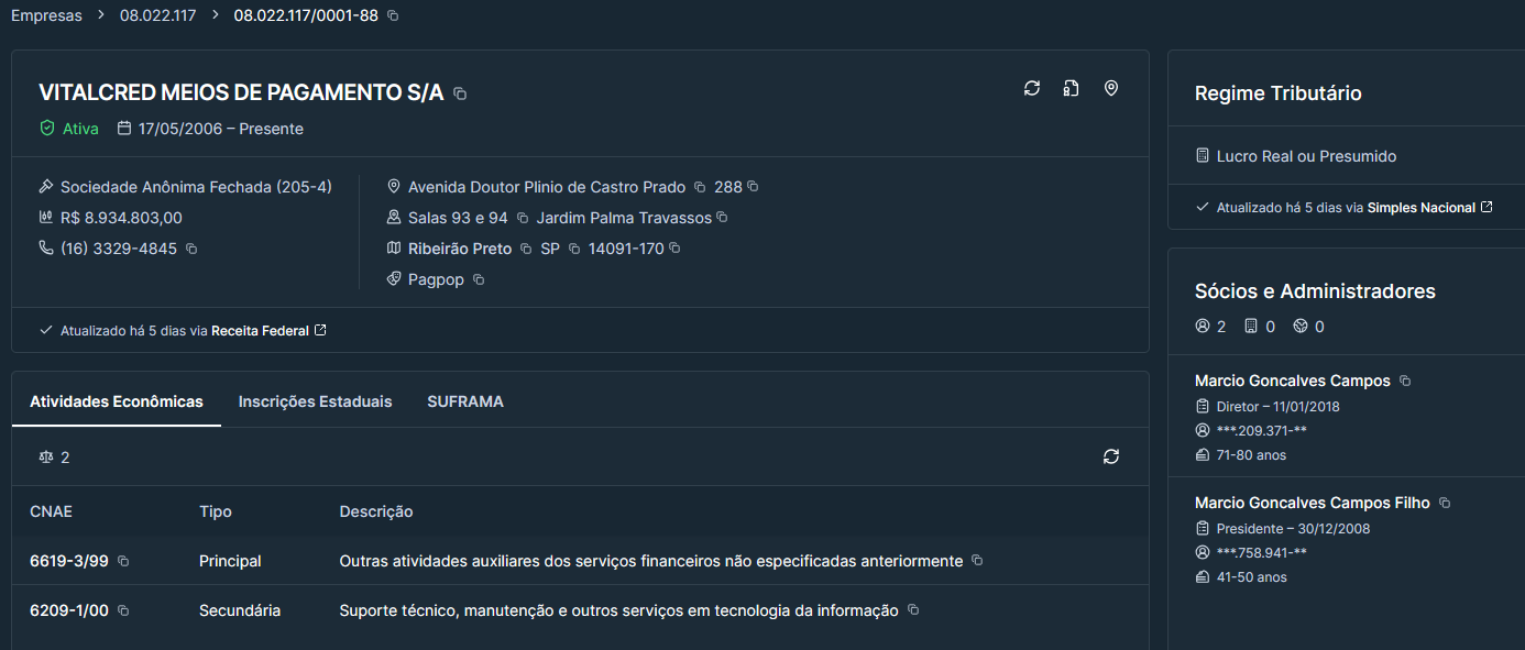 VITALCRED MEIOS DE PAGAMENTO S/A